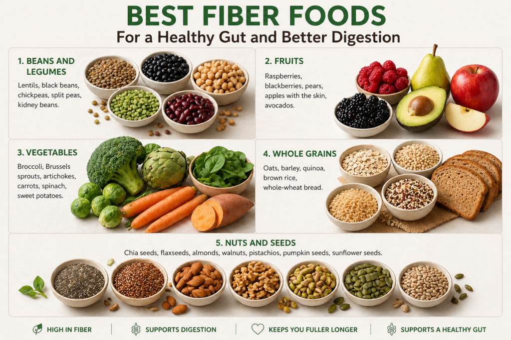 1. High-Fiber Whole Foods (Your Gut’s Best Friend)