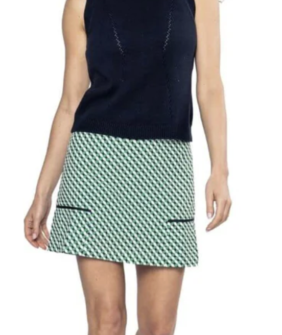 A green or pastel golf dress paired with simple white sneakers always feels fresh and appropriate. Add sunglasses and a lightweight sweater and you’re instantly clubhouse ready.